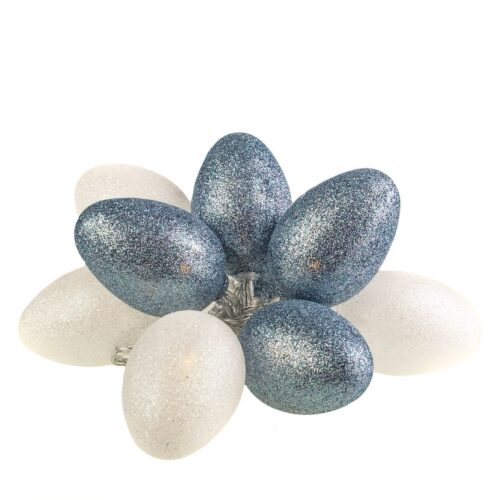 DUZE PLASTIKINIS KIAUŠINIAI VELYKINIAI LED su BROKATEM BIALO-PILKA
