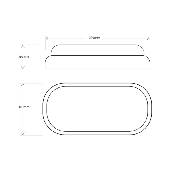 - Matmenys: plotis 230mm, aukštis 46mm, gylis 103mm