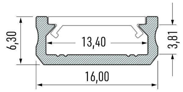 - Matmenys: ilgis 1000 mm, plotis 16 mm, aukštis 6.3 mm